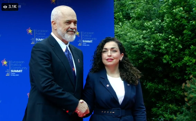 Presidentja Vjosa Osmani ka arritur tek sheshi “Skënderbej” në Tiranë, për samitin e gjashtë të Komunitetit Politik Europian.