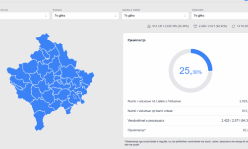 KQZ në përditësimin e fundit ka bërë të ditur se deri më tani kanë marr pjesë 25,30 % e qytetarëve të vendit.