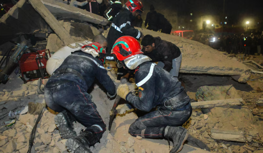 SNRT transmetoi pamje të punonjësve të shpëtimit dhe banorëve që gërmonin në rrënoja gjatë natës për të kërkuar të mbijetuar.