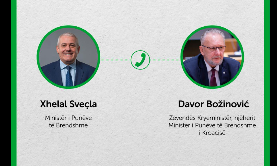 Ministri në detyrë i Punëve të Brendshme, Xhelal Sveçla, ka njoftuar se ka zhvilluar një bisedë me homologun kroat të tij, Davor Bozhinoviq.