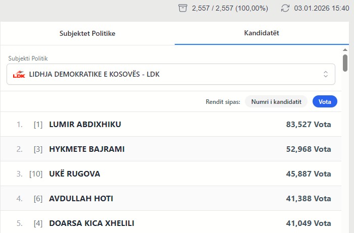 Kur janë numëruar 100% të votave të kandidatëve për deputetë, Hykmete Bajrami ka dalë e dyta në LDK sa i përket votave duke e kalaur kështu Doarsa Kica-Xhelilin, shkruan Gazeta KFVA.