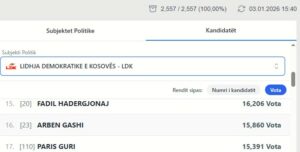 Nga zgjedhjet e 28 dhjetorit, fituese doli Lëvizja Vetëvendosje me 49.35%, e dyta doli PDK me 21.02%, dhe LDK u radhit e treta me 13.59%.