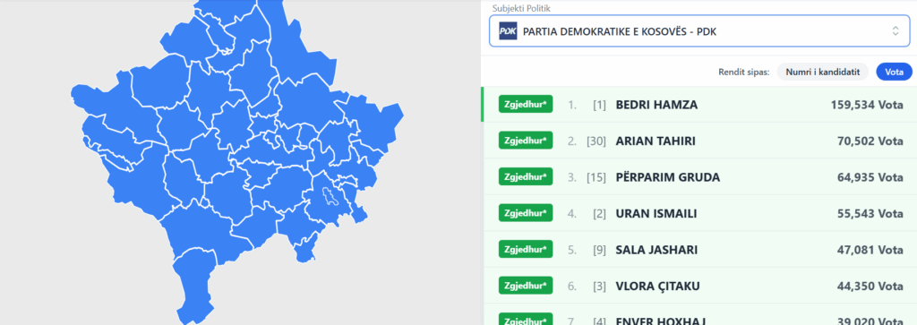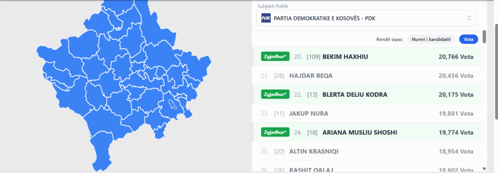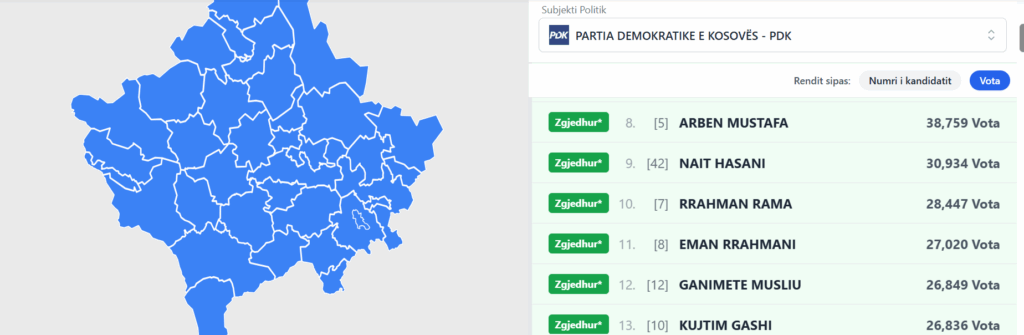 Komisioni Qendror i Zgjedhjeve (KQZ(, në uebfaqe, ka selektuar kandidatët që kanë arritur të sigurojnë ulëse në kuvend.