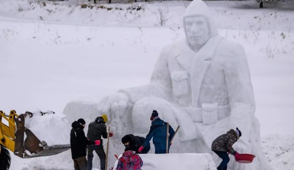 Një tregtar në lagjen Azdavay të Kastamonus, Turqi, i cili ka bërë skulptura dëbore për…