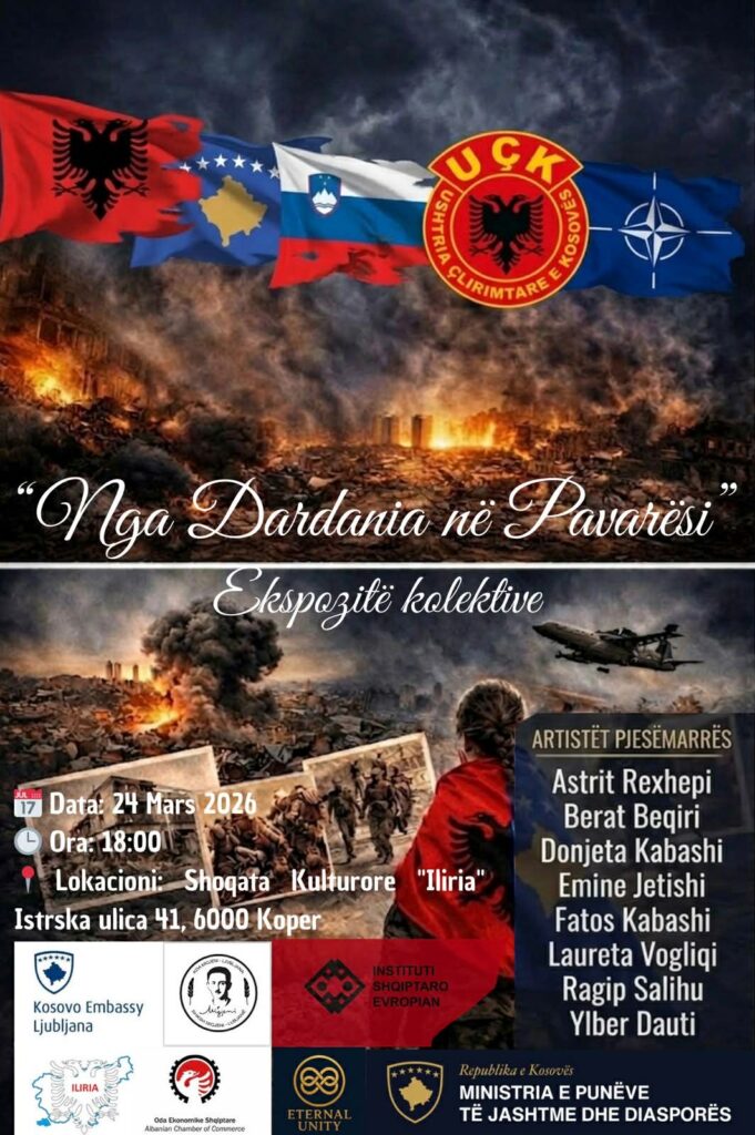 Lubjanë – Ekspozita artistike “Nga Dardania në Pavarësi” hapet më 23 mars në Lubjanë, duke ofruar një rrëfim vizual të fuqishëm që ndërlidh lashtësinë e Dardanisë me shpalljen e Pavarësisë së Kosovës. E organizuar nga Instituti – Lidhja Shqiptaro-Europiane, kjo ngjarje kulturore sjell përpara publikut një udhëtim unik artistik dhe shpirtëror, ku historia dhe qëndresa shqiptare interpretohen përmes veprave të artit bashkëkohor.